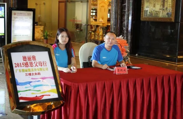 201579日,廣州南洋長勝酒店大門掛著長長的橫幅“德麗雅·2015感恩父母行 歡迎您”格外溫馨醒目。在金碧輝煌的大堂“德麗雅人”正在緊鑼密鼓地準備迎接事項。