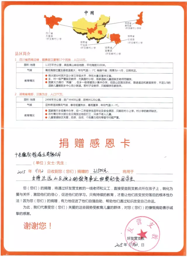 2015年11月,廣東德麗雅漆業(yè)有限公司再次將本年度對(duì)“好友營(yíng)支教”的資助款項(xiàng)匯入指定賬號(hào)。自2006年“好友營(yíng)支教”成立以來(lái),廣東德麗雅漆業(yè)有限公司就堅(jiān)持每年對(duì)該組織的現(xiàn)金和物資資助,并一直是該組織的理事單位。