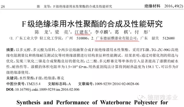 近期分別在知名雜志《絕緣材料》發表了論文《F級絕緣漆用水性聚氨酯的合成及性能研究》和知名雜志《電鍍與涂飾》發表了論文《水性仿金屬塑料漆的研制》。