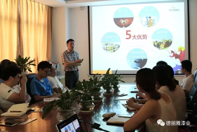 201786日,廣東德麗雅漆業有限公司總經理江建東一行6人到油漆堡總部,與油漆堡各門店店長進行德麗雅宣講交流會,并與油漆堡的高中層領導以及銷售精英們探討如何加深合作,并分享最新的涂料行業信息,攜手共同學習進步,深化合作共創未來。
